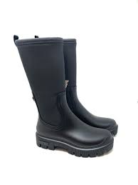 Stivale Mizu Mate Gomato in nero. Realizzate con tomaia in materiale sintetico, fodera e suola in tessuto e suola in gomma. Realizzate in Spagna. Gli stivali alti più trendy con suola a binario per i giorni di pioggia e per i vostri look invernali. Elevate i vostri outfit con i nostri stivali Mizu. 100% Verbenas!